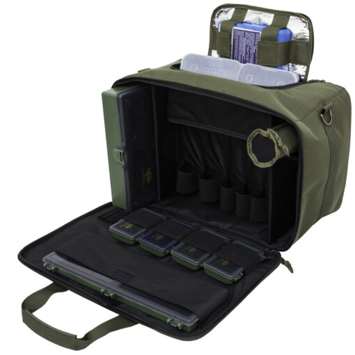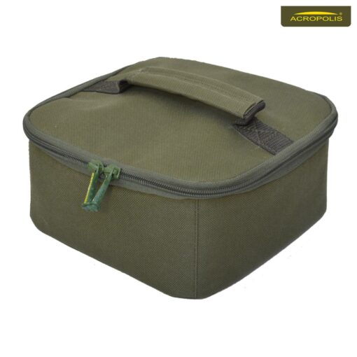 Рибацька сумка для спінінгової рибалки Acropolis РС-4. Пошита з високоякісних водонепроникних матеріалів. Розрахована для носіння двох коробок під аксесуари. Спереду жорстка захисна кишеня для 2-х котушок і запасних шпуль. Об’ємні бокові кишені пришиті міцними армованими нитками. Сумка спінінгова комплектується зручним плечовим ременем з наплічником, щоб ремінь не натирав, якщо важка сумка заповнена повністю. Зверху передбачена транспортна ручка.