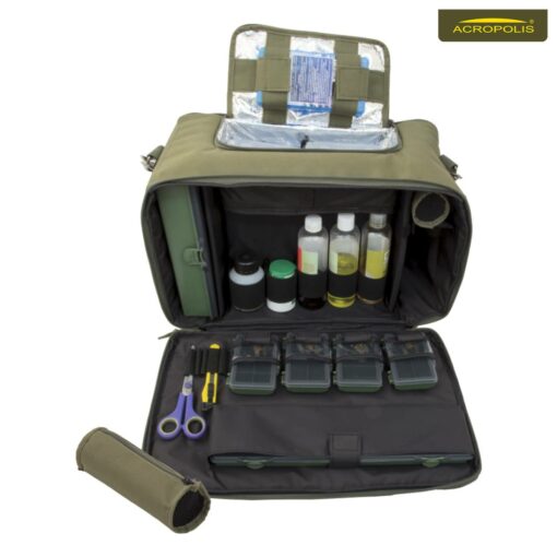 Чохол для транспортування і зберігання електронних (в зібраному вигляді на бусбарі) і механічних сигналізаторів – Акрополіс ЧБС-2. Складається з 2-х секцій. В середині кишеня з сітки, закривається на замок. М’яка перегородка з пінополіетилену для бережного захисту вмісту сумки. Зверху пришита ергономічна ручка для переносу. Функціональний та практичний рибальський аксесуар.