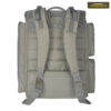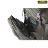 Зі сторони спини бачимо надійні плечові лямки, ручку для транспортування та об’ємну м’яку поясну вставку для зручного перенесення рюкзака на рибалці.
