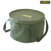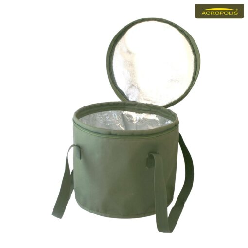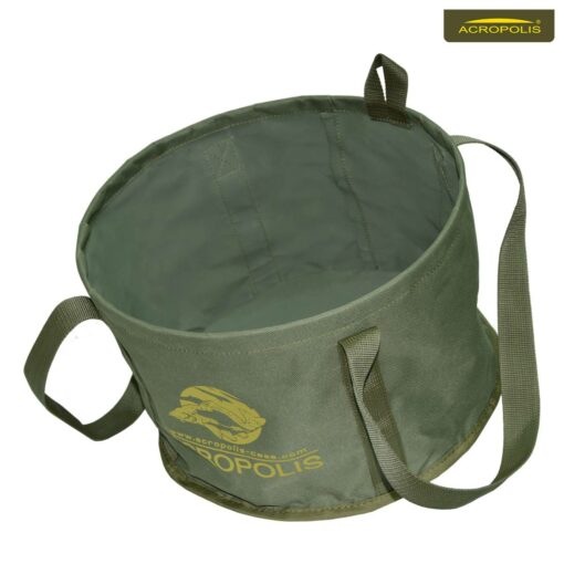 Якісне м‘яке відро для замішування, зберігання та переносу прикормки для мирної поплавкової рибалки. Має складну конструкцію, в складеному вигляді займає мало місця в рибальській сумці. З боків, міцно пришиті армованими нитками, дві ручки з ремінного матеріалу для транспортування відер на плечі або в руках. Пружинний верх відерка допомагає під час замішування прикорму на риболовлі.